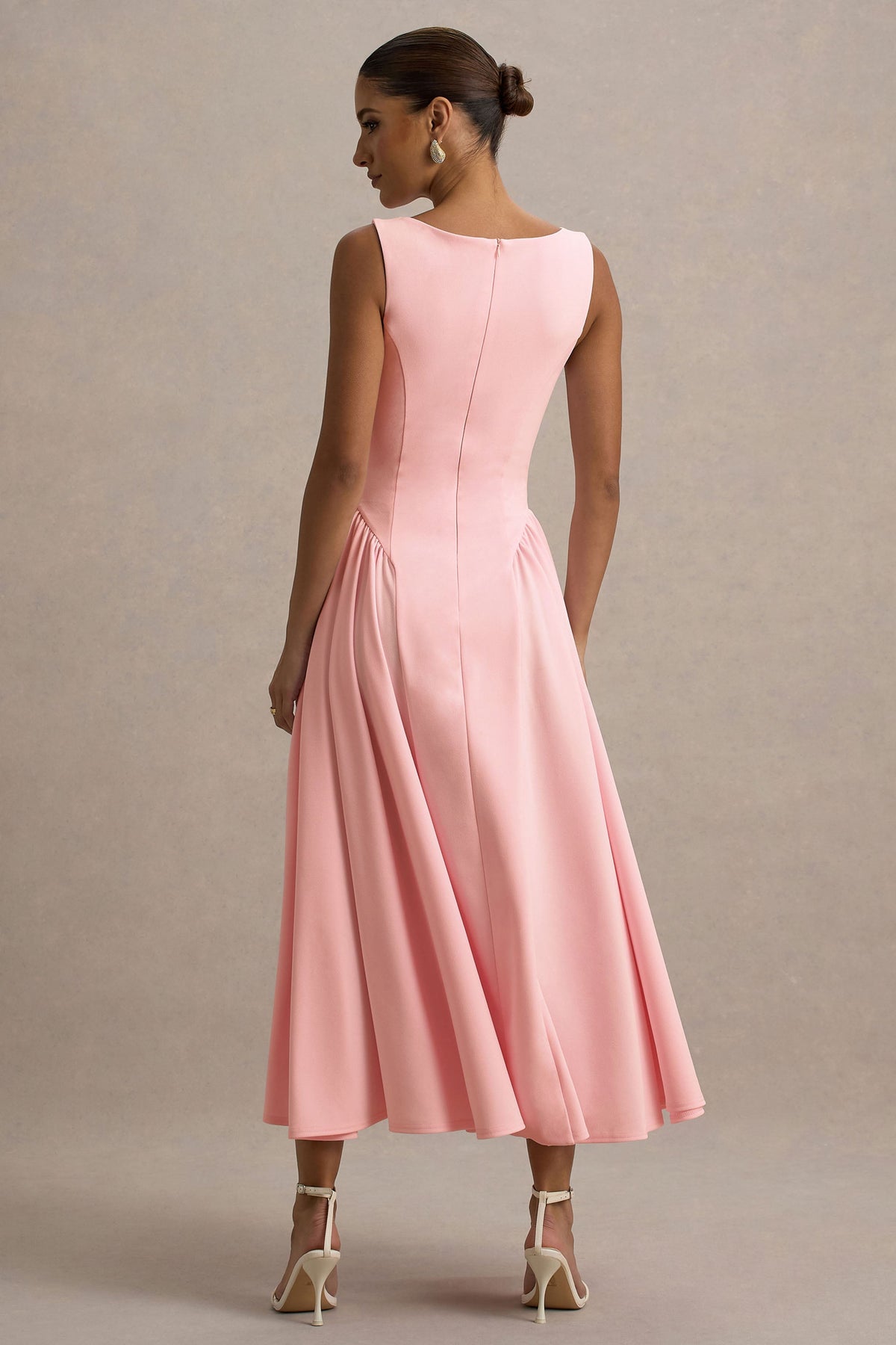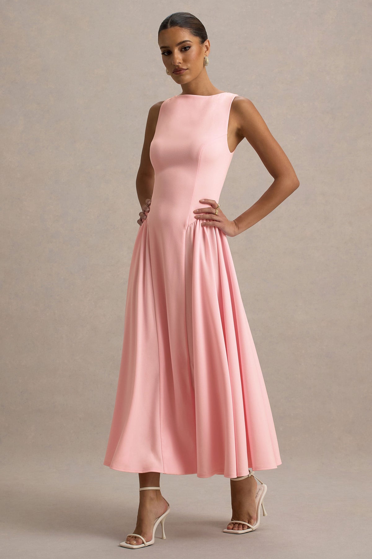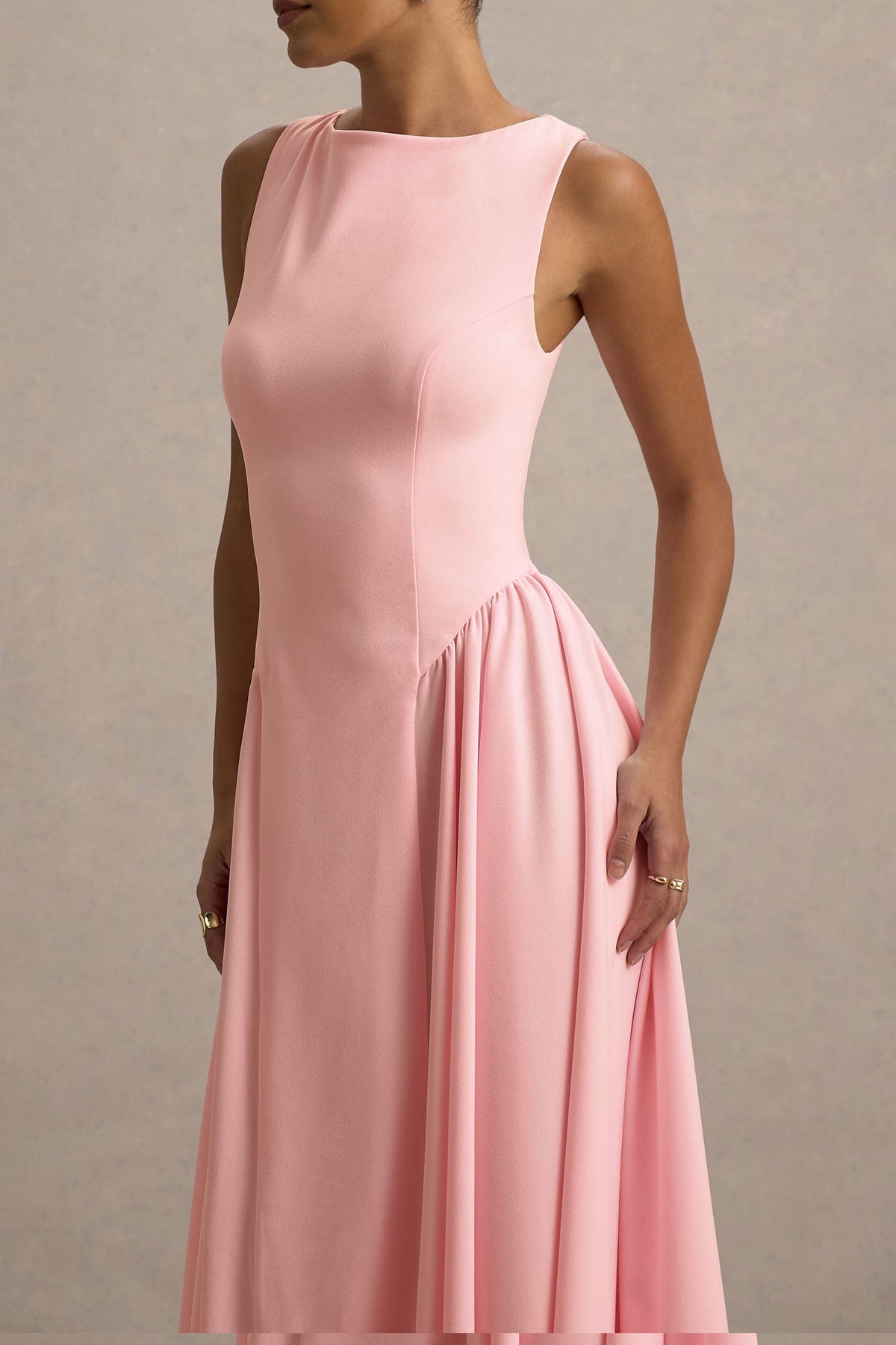 Muriel | Pink Boat-Neck Volume-Hem Midi Dress